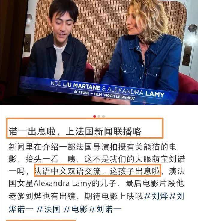 2025年4月6日,一则“刘烨14岁儿子诺一登上法国新闻联播”的消息引爆社交媒体。镜头前的少年身姿挺拔,以流利的中法双语侃侃而谈,为电影《熊猫月亮》宣传造势。